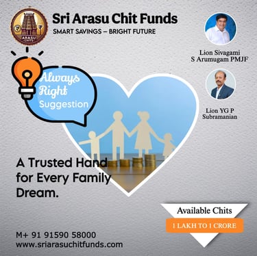 At Sri Arasu Chit Funds, we are dedicated to providing transparent and reliable financial solutions tailored to meet your needs, ensuring a secure path to achieving your financial aspirations.